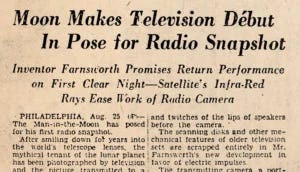 The power of the new medium was demonstrated at the door: Farnsworth placed a camera near the door, and visitors were immediately confronted by their own disembodied image flickering on an equally strategically placed receiver.