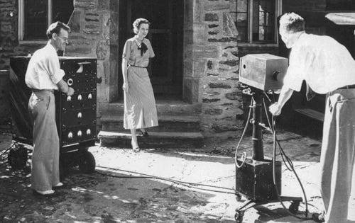 Absent an advance lineup, programs were thrown together on the fly and transmitted from the roof of the Institute to an auditorium downstairs. Vaudeville acts, popular athletes, and a swarm of politicians volunteered to appear before Farnsworth’s cameras.