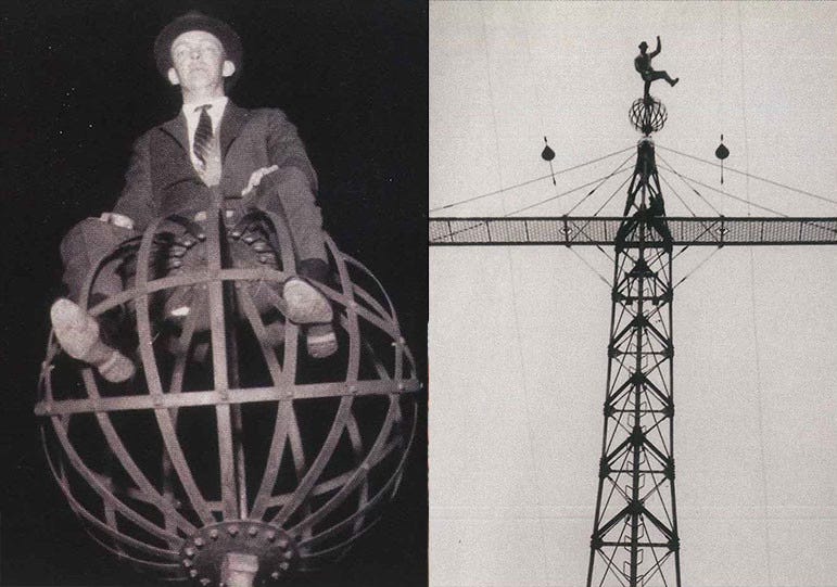 When FM was introduced, the FCC assigned a range of frequencies from 42-50 MHz, and Armstrong began experimental broadcasts from an elevated site overlooking the Hudson River near Alpine, New Jersey. In 1936, he built a 400-foot tower capable of sending signals as far away as New Haven and Baltimore. Photos from the period show Armstrong scaling the tower and perching at its top.